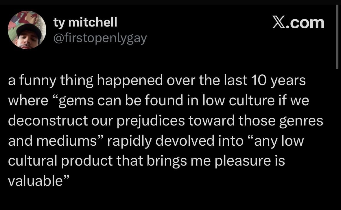 “Generative AI’s main use case is ostensibly empowering the lazy, the untalented and the unqualified to create things they have no business creating. If they had any business creating those things, they would value and invest in the journey/ slog and consequently they would become initiated via their own passion and aptitude – at which stage they would have little to no interest in using GenAI. Instead, the mediocre reap the fruit of the labour of the contributors, whose uncredited and uncompensated work trained these models and is the foundation of anything the interlopers go on to “create”.
